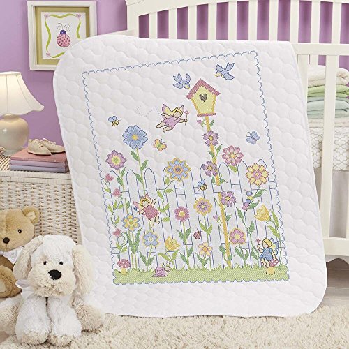 Baby by Herrschners Pre-Quilted Fairy Garden Baby Quilt Top Stamped Cross-Stitch Kit